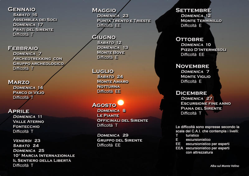 Con il nuovo programma escursionistico 2010 "Immaginate che le Montagne abbiano voce, immaginate che i boschi e gli uccelli, il vento e le slavine possano parlare tra loro e che siano persino capaci di raccontare storie e leggende, favole e avventure. Un lago e una foresta, insieme a tutte le cose e agli animali."Cercheremo di scoprirle insieme, camminando lungo i loro sentieri e ascoltando la loro voce "...io mi girai e vidi un arcobaleno che non andava e non veniva, che semplicemente stava lì, facendo ponti per i mondi, facendo ponti per i sogni..."