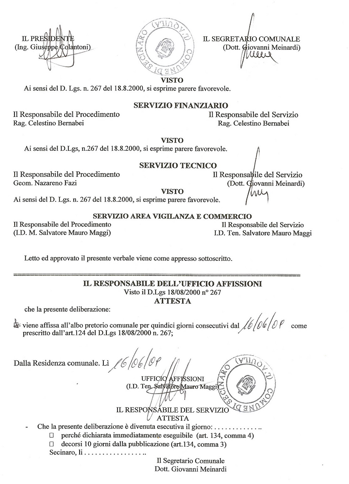 Il Sindaco Colantoni Giuseppe