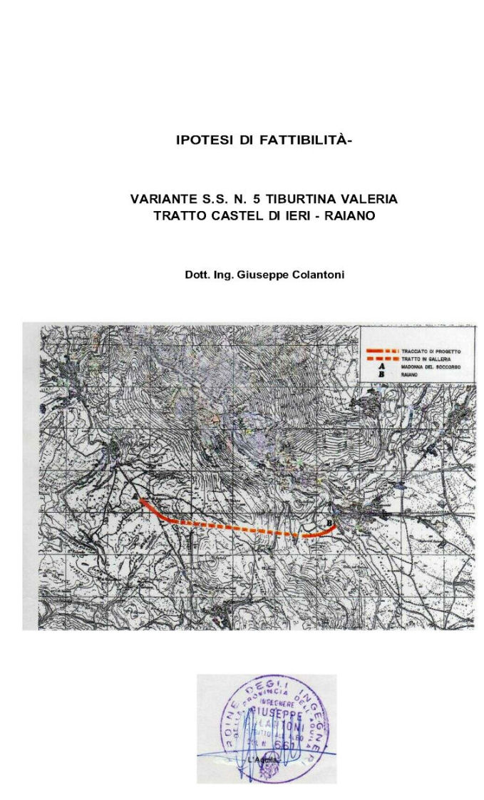 Cliccando il bottoncino relativo agli allegati si possono consultare : - documento realizzazione traforo 1993; - testata progetto preliminare; - planimetria progetto; - profilo longitudinale; - sezione geologica; - carta geologica - relazione geologica; - sezione galleria; - sezione 1; - sezione 2; - sezione 3; - grafico popolazione Valle Subequana; - nota C.M. Sirentina; - nota Ass. Regionale Colantoni Giuseppe
